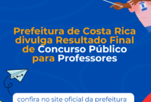 MsEspecial COSTA RICA (MS) – A Prefeitura de Costa Rica, via Secretaria Municipal de Educação (SEMED), oficializou nesta terça-feira (14 de abril de 2026) a homologação do resultado final do Concurso Público nº 01/2026. O…