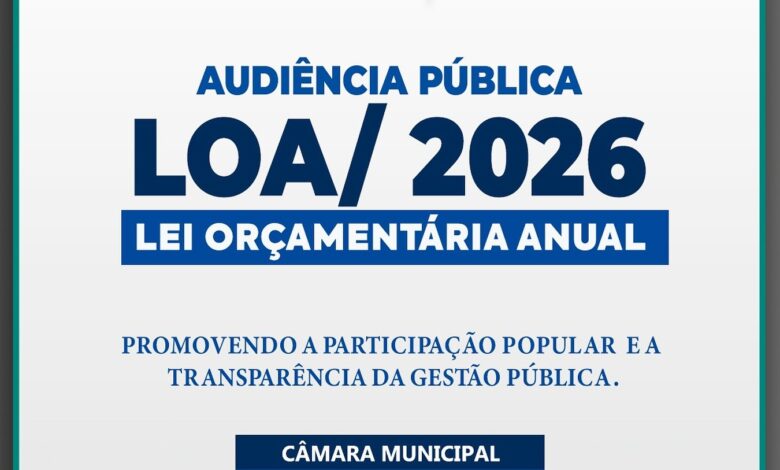 A Prefeitura de Alcinópolis, através das secretarias de Governo e Gestão Estratégica e de Planejamento, Administração e Finanças, convoca toda a população e entidades civis para a Audiência Pública que discutirá o Projeto de Lei da Lei Orçamentária Anual (LOA) para o exercício de 2026.