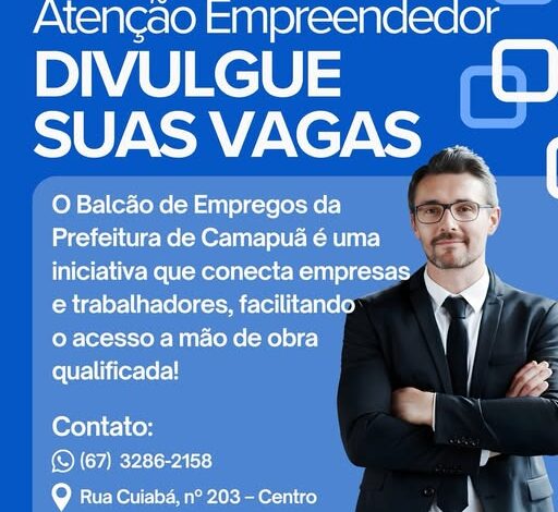 A Prefeitura de Camapuã reforça a importância do Balcão de Empregos como uma iniciativa gratuita para conectar empresas que possuem vagas abertas e trabalhadores em busca de oportunidades. O objetivo é facilitar o acesso a mão de obra local qualificada e fortalecer o mercado de trabalho no município.