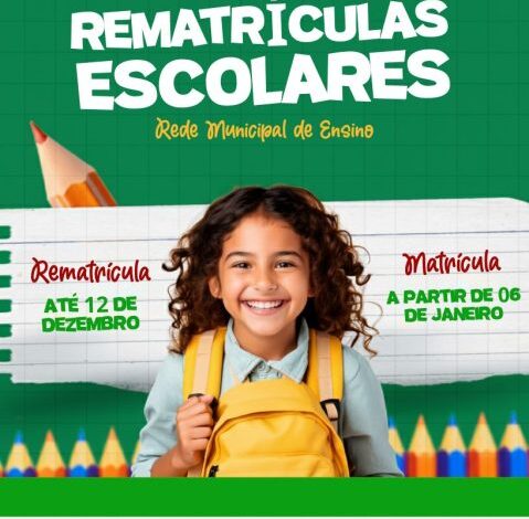 A Secretaria de Educação de Paranaíba alerta os pais e responsáveis: o calendário de matrículas e rematrículas para o ano letivo de 2026 já está aberto. Desde o dia 24 de novembro, as unidades de ensino estão recebendo a comunidade para garantir a vaga dos estudantes que foram aprovados em 2025.