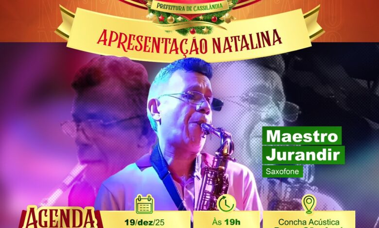 A noite desta sexta-feira (19) será marcada pela sofisticação e pela emoção em Cassilândia. Dando sequência à programação do “Natal Encantado”, a Prefeitura Municipal, por meio da SETESC, traz à Concha Acústica da Praça São José a apresentação especial do Maestro Jurandir.
