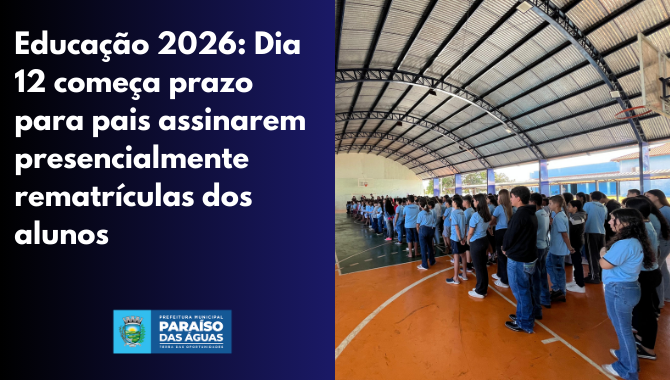 A Secretaria Municipal de Educação, Cultura, Esporte e Lazer (SEMECEL) de Paraíso das Águas emitiu um alerta importante aos pais e responsáveis: a vaga dos alunos para o ano letivo de 2026 só estará garantida após a assinatura presencial da rematrícula.