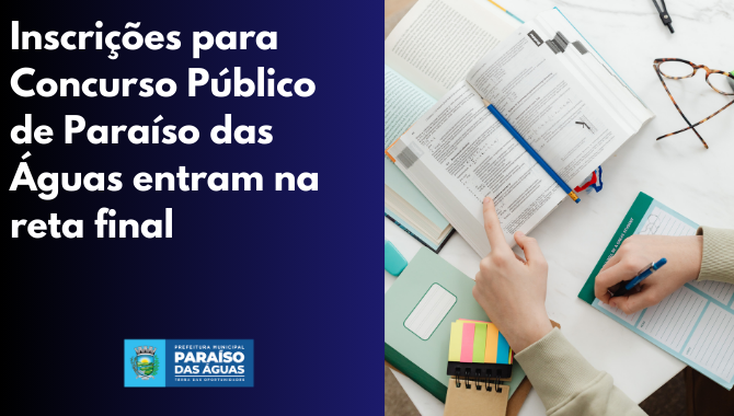 Quem busca uma vaga no serviço público em Paraíso das Águas precisa correr contra o tempo. As inscrições para o Concurso Público da prefeitura entraram na reta final e seguem abertas apenas até as 23h59 do dia 15 de janeiro de 2026 (horário de Brasília).