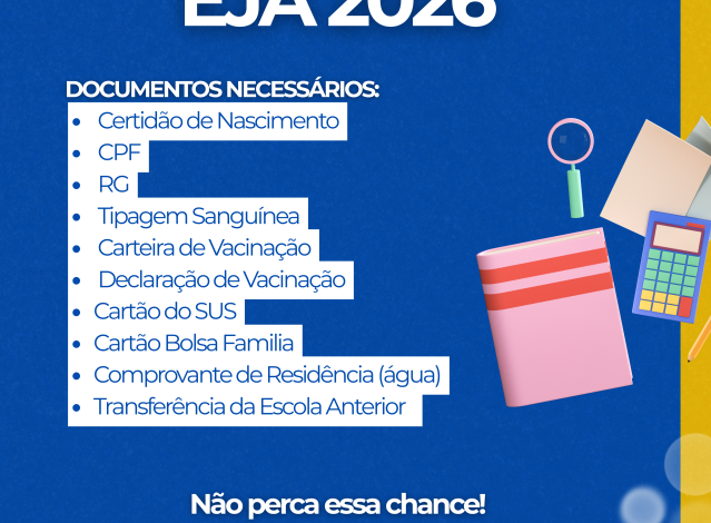 Para quem sonha em concluir os estudos e dar uma guinada na vida profissional, a hora é agora. A Secretaria Municipal de Educação (SEMED) de Costa Rica anunciou a abertura das matrículas para as turmas de Educação de Jovens e Adultos (EJA) referentes ao ano letivo de 2026.