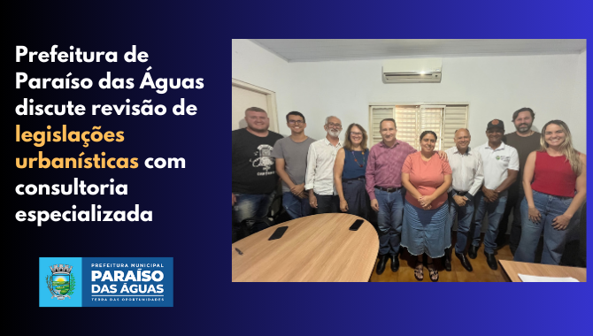 Pensar a cidade para os próximos 10, 20 anos. Foi com esse objetivo que a Prefeitura de Paraíso das Águas realizou, na manhã desta quinta-feira (15), uma reunião estratégica para dar início à revisão das principais leis que regem o crescimento do município.