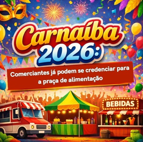 Atenção comerciantes e ambulantes de Paranaíba: começou a corrida para garantir um espaço na festa mais esperada do ano. A Prefeitura, através da Secretaria de Cultura, abriu oficialmente o credenciamento para quem deseja trabalhar na Praça de Alimentação do Carnaíba 2026.