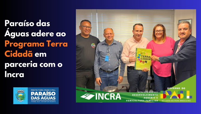 “A adesão ao Programa Terra Cidadã representa um avanço significativo para Paraíso das Águas. Esse programa vai proporcionar mais segurança jurídica aos nossos produtores rurais e ampliar as oportunidades de desenvolvimento no campo”, declarou o chefe do Executivo.