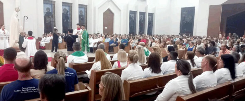 A Igreja Nossa Senhora de Fátima ficou completamente lotada na noite de ontem durante a missa canônica de apresentação do novo pároco, padre Tiago Felipe Lopes, e do diácono Lucas Fernandes, que assume a função de auxiliar paroquial. A celebração foi presidida pelo bispo diocesano de Três Lagoas, dom Luiz Gonçalves Knupp, e contou com a presença do Superior Geral do Instituto Missionários São José, padre Vicente Paulo Moreira Borges.