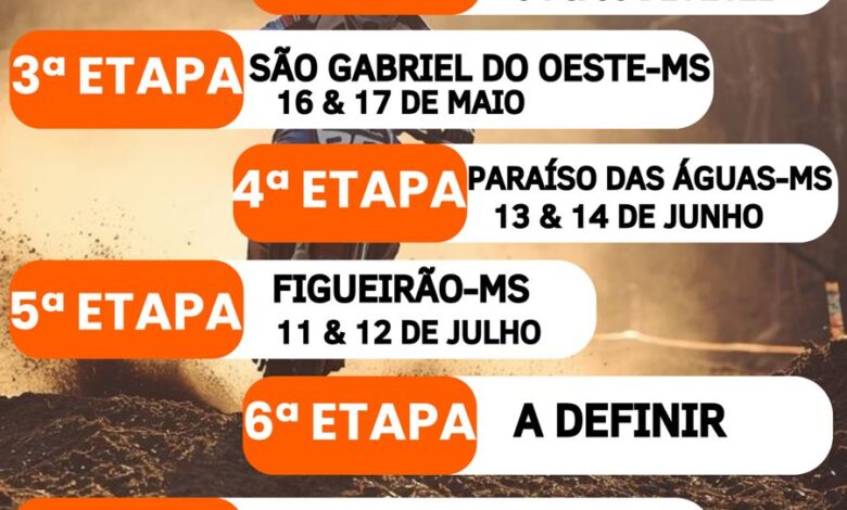 Competição começa nos dias 7 e 8 de março; Inocência e Figueirão também receberão etapas da temporada.