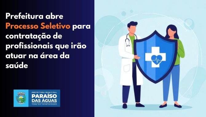 A Prefeitura de Paraíso das Águas publicou edital de Processo Seletivo Simplificado para reforçar o quadro da Secretaria de Saúde. As inscrições foram abertas nesta segunda-feira (02) e seguem apenas até o dia 09 de fevereiro (segunda-feira que vem).