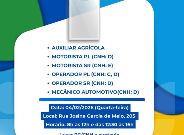 Atenção trabalhadores de Costa Rica: a quarta-feira (04) é dia de oportunidade. A Usina Atvos, em parceria com a Prefeitura e a Casa do Trabalhador, está realizando hoje um Mutirão de Vagas para preencher o quadro de funcionários da safra 2026/2027.