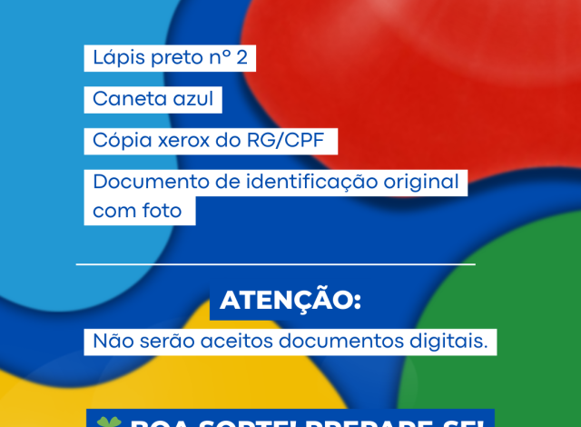 Atenção: A organização adverte que não serão aceitos documentos digitais (em aplicativos de celular). Além disso, está expressamente proibido o uso de borracha durante os testes, uma regra técnica comum em avaliações psicotécnicas.