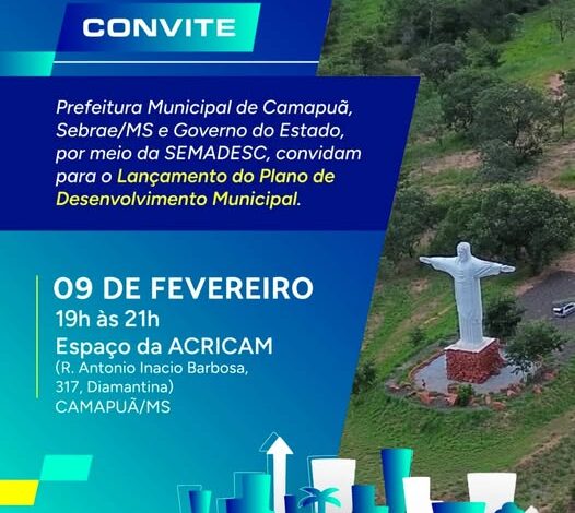 Uma noite decisiva para a cidade de Camapuã. Foi lançado ontem à noite (09), no espaço da Acricam, o Plano de Desenvolvimento Municipal (PDM). O documento é uma espécie de “bússola” que vai guiar os investimentos e as ações da prefeitura pelos próximos anos.