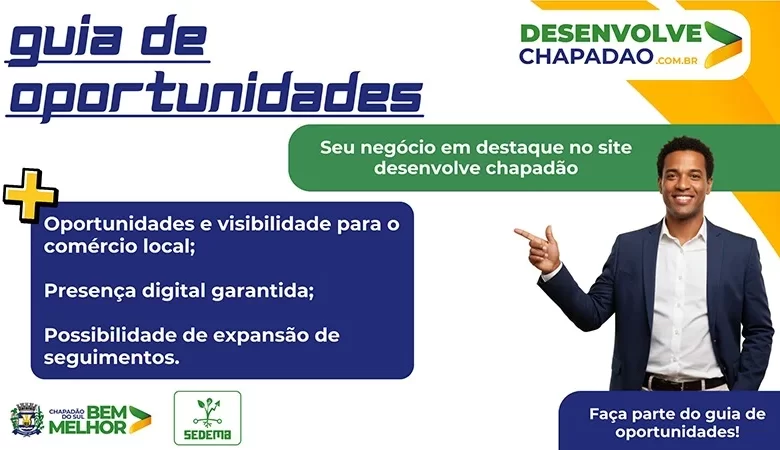 Portal "Desenvolve Chapadão" centraliza oportunidades e oferece Guia Comercial gratuito para bares, restaurantes e hotéis.