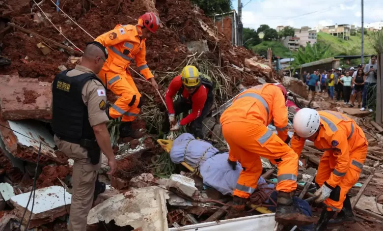 As equipes do Corpo de Bombeiros, Defesa Civil e voluntários estão trabalhando ininterruptamente nas áreas de escombros. Em Juiz de Fora, o foco principal é a localização dos 17 desaparecidos sob os deslizamentos de encostas que atingiram bairros periféricos.