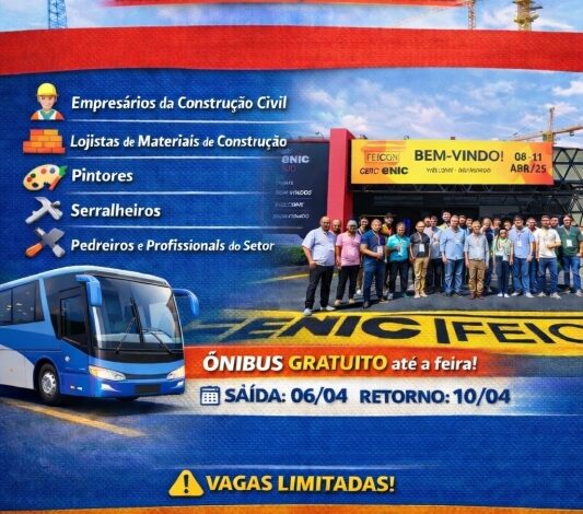 Costa Rica rumo à Feicon 2026: Prefeitura oferece ônibus gratuito para profissionais da construção civil