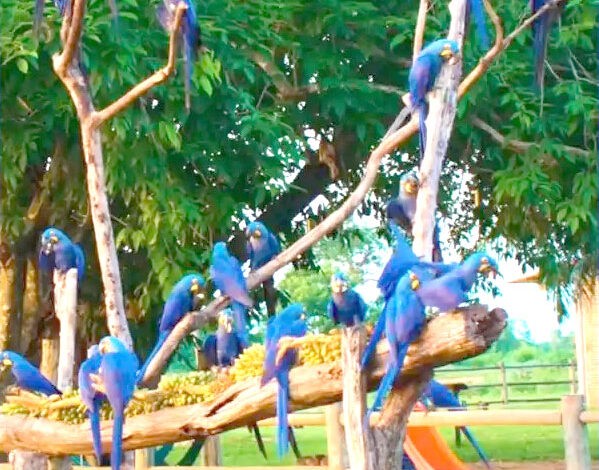 Aglomerado de araras-azuis no galho de uma única árvore rendeu um registro impressionante no Pantanal sul-mato-grossense. A cena é considerada incomum, até mesmo para quem acompanha de perto a vida selvagem da região, e foi parar nas redes sociais, causando encantamento aos internautas.
