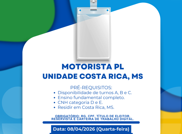 • Habilitação: CNH categorias D e E (para as vagas de Motorista PL).