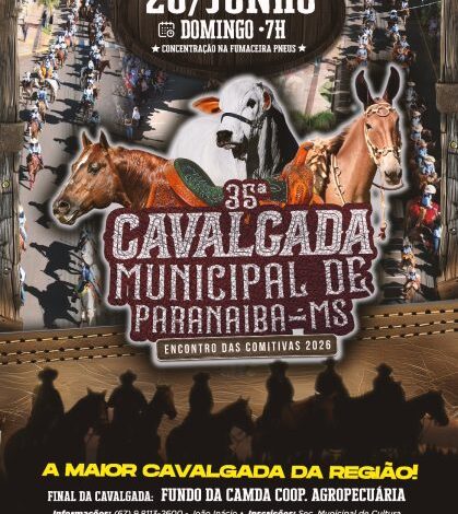PARANAÍBA (MS) – É hora de preparar o arreio e organizar a comitiva. A Prefeitura de Paranaíba, por meio da Secretaria Municipal de Cultura, oficializou o início das inscrições para a 35ª Cavalgada Municipal, um dos eventos mais emblemáticos e tradicionais do calendário sertanejo de Mato Grosso do Sul.