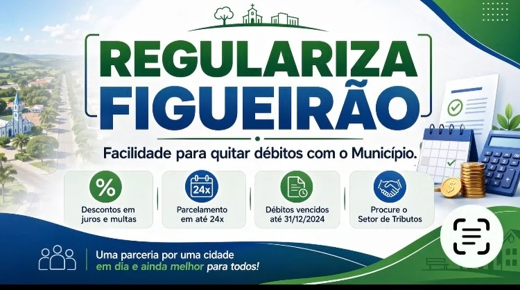 A Prefeitura de Figueirão instituiu o programa Regulariza Figueirão, criado para ajudar cidadãos e empresas a quitarem débitos com o Município de forma mais fácil. A medida foi estabelecida pela Lei Complementar nº 119/2025.