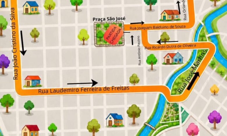Ponto Central: A Praça São José funcionará como o “coração” do evento, concentrando os serviços de apoio e a cerimônia de chegada.