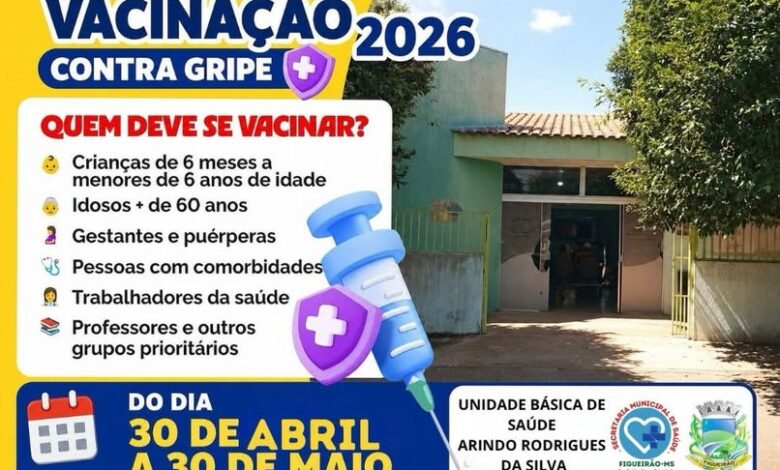 A Prefeitura de Figueirão convoca a população para a campanha de vacinação contra a gripe, que inicia oficialmente nesta quinta-feira, 30 de abril. A mobilização visa aumentar a imunidade da comunidade e reduzir as complicações causadas pelo vírus Influenza, garantindo proteção especialmente para os grupos mais vulneráveis.