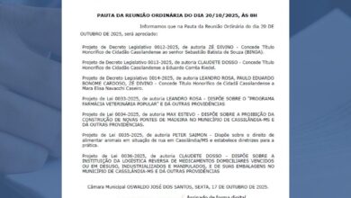 MsEspecial A Câmara Municipal de Cassilândia divulgou a pauta de sua próxima sessão legislativa, nesta segunda-feira, 20 de outubro, que…