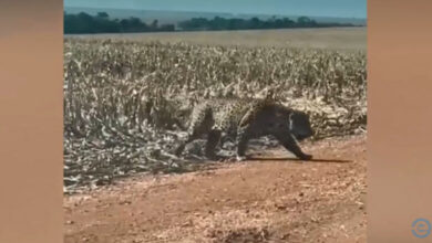 Imagem dramática: Onça-pintada foge de incêndio no Parque Estadual Nascentes do Taquari