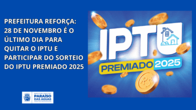 Prazo Final: 28 de novembro é o último dia para quitar o IPTU e concorrer a R$ 21,6 mil em prêmios em Paraíso das Águas